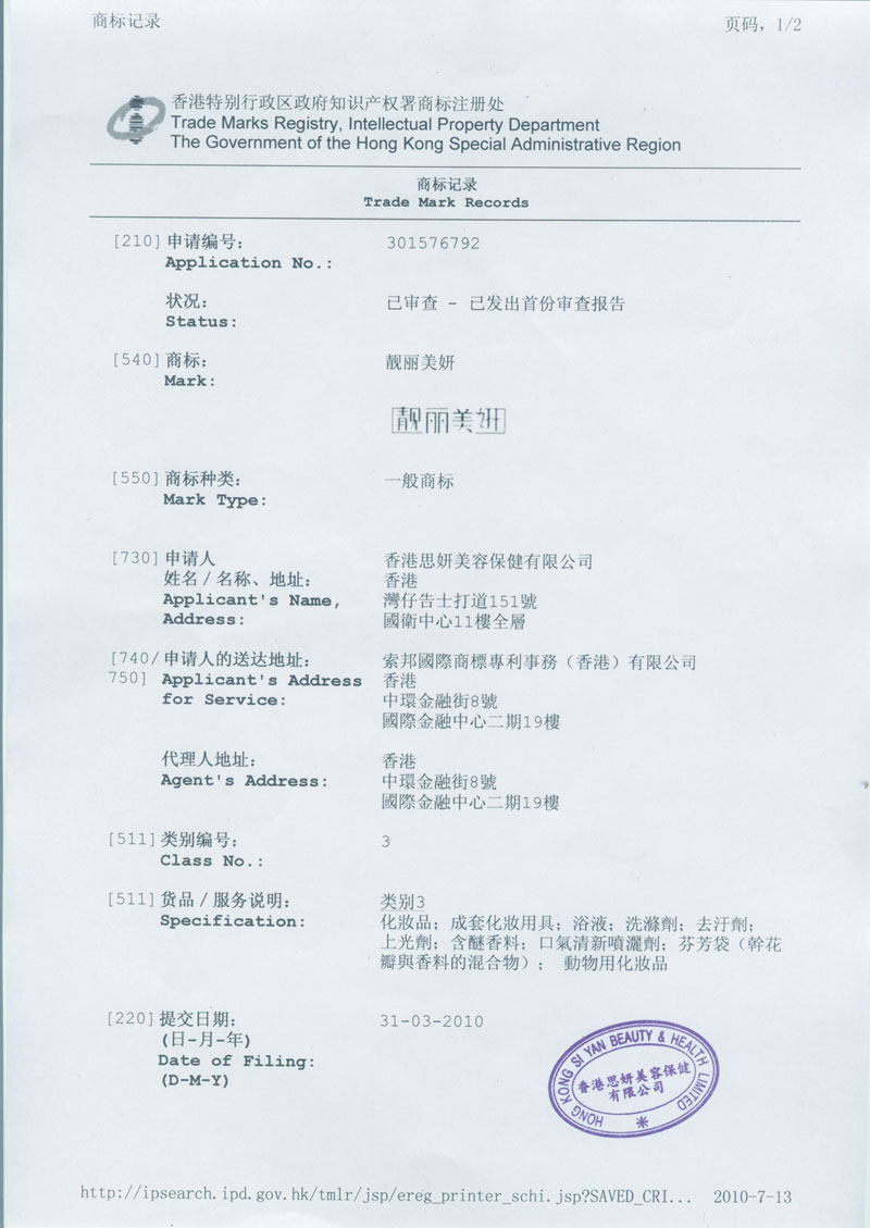 靓丽美妍注册商标